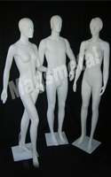 Adulto Hombre-Mujer. Confeccionado en fibra de vidrio y montado sobre pedestal metalico.Color: Blanco o/a Elección.
