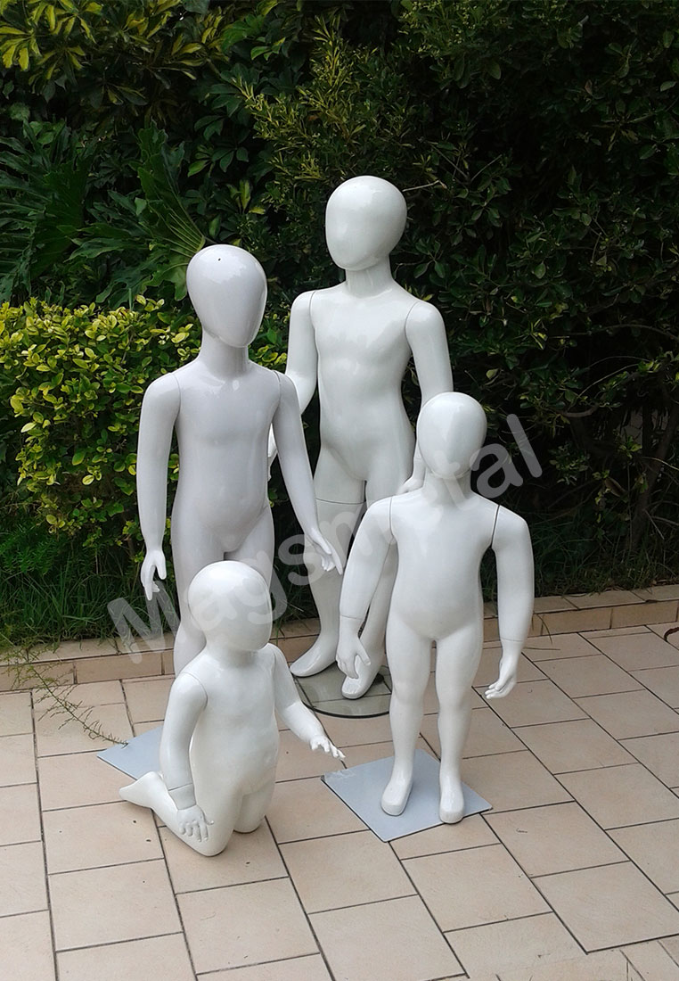 Modelo: Maniqui Linea Infantil Nueva Generacion. Tamaño: Bebe-Niño-Infantil. Descripcion: Confeccionado en fibra de vidrio y montado sobre pedestal metalico. Color: Blanco.